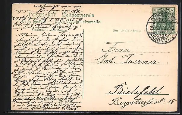 alte Ansichtskarte, gelaufen 1907, Eckknick re. oben, guter Zustand