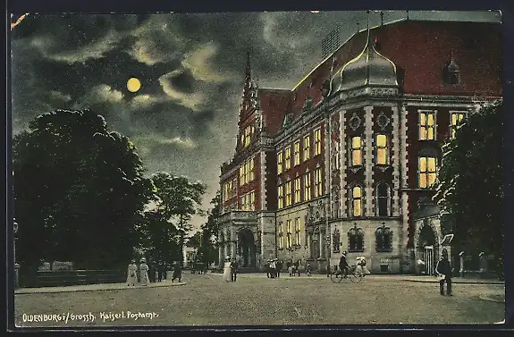 AK Oldenburg / O., Kaiserliches Postamt im Mondschein