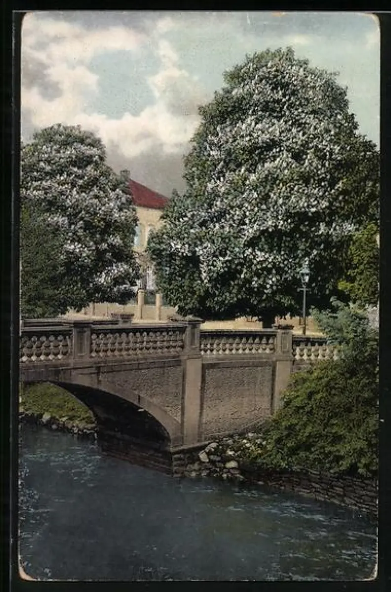 AK Oldenburg / O., Kastanienblüte am Fluss