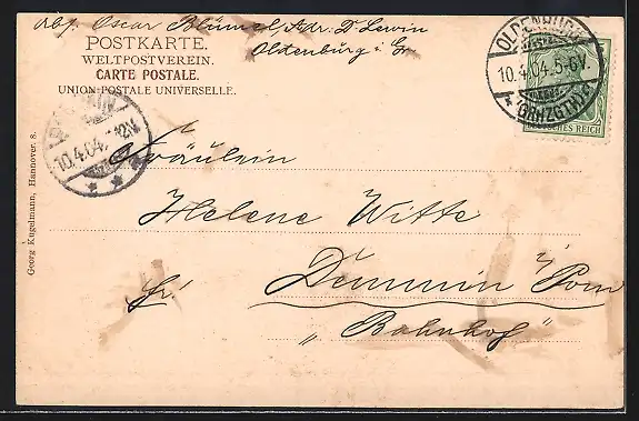alte Ansichtskarte, gelaufen 1904, guter Zustand