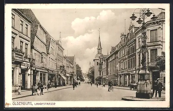 AK Oldenburg / O., Langestrasse mit Kirchturm
