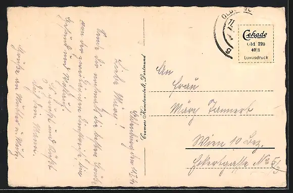 alte Ansichtskarte, gelaufen, Briefmarke entfernt, guter Zustand