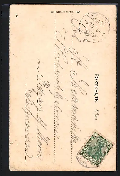 alte Ansichtskarte, gelaufen 1902, Bugspur oben re., guter Zustand