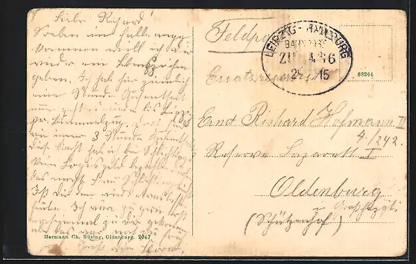 gelaufen 1915, Eckknicke links u. rechts, guter Zustand