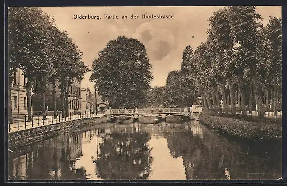 AK Oldenburg / O., Partie an der Huntestrasse