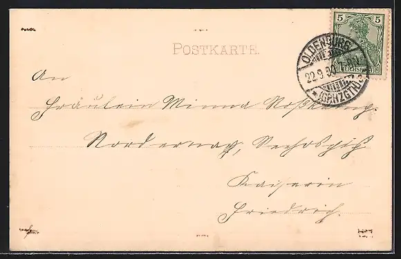 alte Ansichtskarte, gelaufen 1900, guter Zustand
