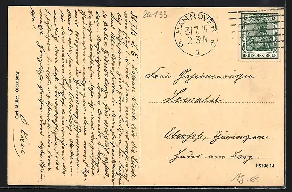 alte Ansichtskarte, gelaufen 1915, Stempelspur, guter Zustand
