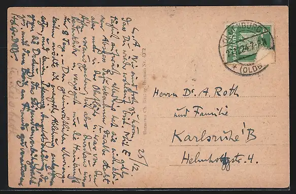 alte Ansichtskarte, gelaufen 1924, Einriss li., guter Zustand