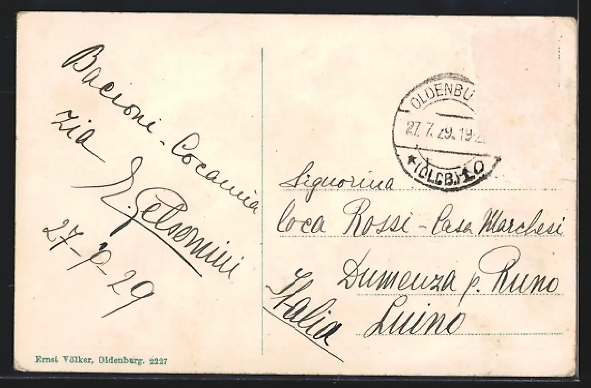 alte Ansichtskarte, gelaufen 1929, Briefmarke entfernt, rückseitig Oberflächenschaden, guter Zustand