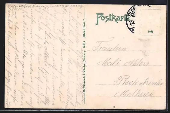 alte Ansichtskarte, gelaufen, Briefmarke entfernt, guter Zustand