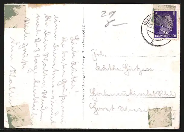 alte Ansichtskarte, gelaufen 1943, rückseitig Klebe- und Papierreste, Eckknick rechts, guter Zustand