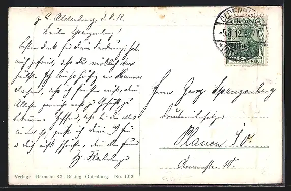 alte Ansichtskarte, gelaufen 1912, guter Zustand