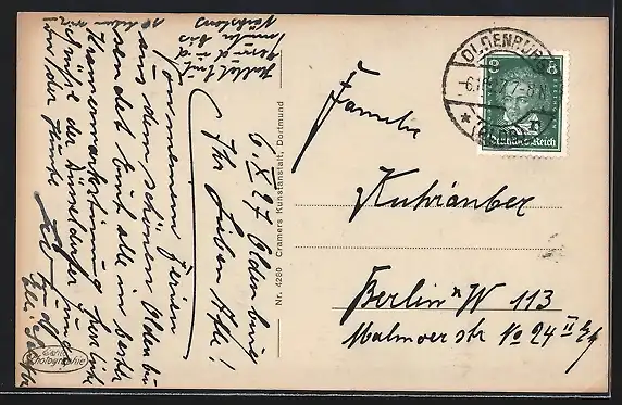 alte Ansichtskarte, gelaufen 1927, Eckknick unten li., Stempelspur, guter Zustand