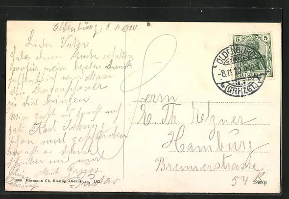 alte Ansichtskarte, gelaufen 1910, guter Zustand
