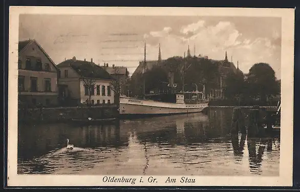 AK Oldenburg i. Gr., Am Stau mit Dampfer