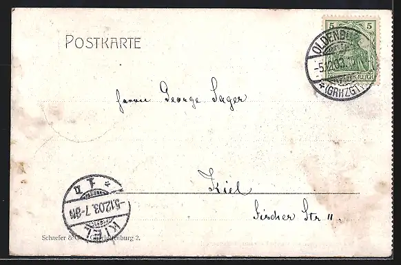 alte Ansichtskarte, gelaufen 1903, Bugspur re. mittig, guter Zustand