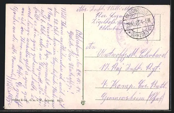 alte Ansichtskarte, gelaufen 1917, Stempelspur, guter Zustand