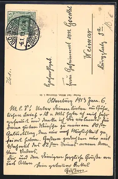 alte Ansichtskarte, gelaufen 1913, Stempelspur, guter Zustand