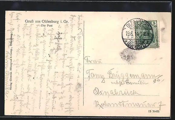 AK Oldenburg i. Gr., Die Post mit Strassenpartie