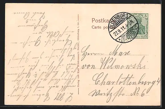 alte Ansichtskarte, gelaufen 1911, guter Zustand
