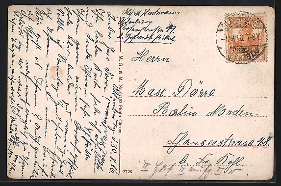 alte Ansichtskarte, gelaufen 1916, Eckknicke rundrum, Bugspur oben mittig, guter Zustand