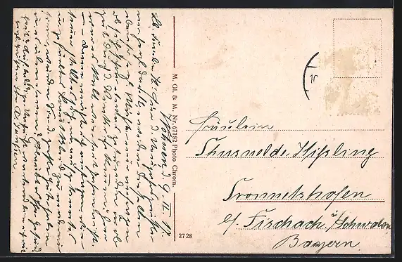 alte Ansichtskarte, gelaufen, Briefmarke entfernt, guter Zustand