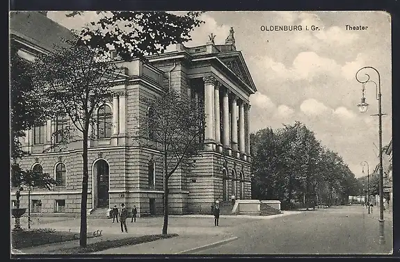 AK Oldenburg i. Gr., Strassenpartie am Theater
