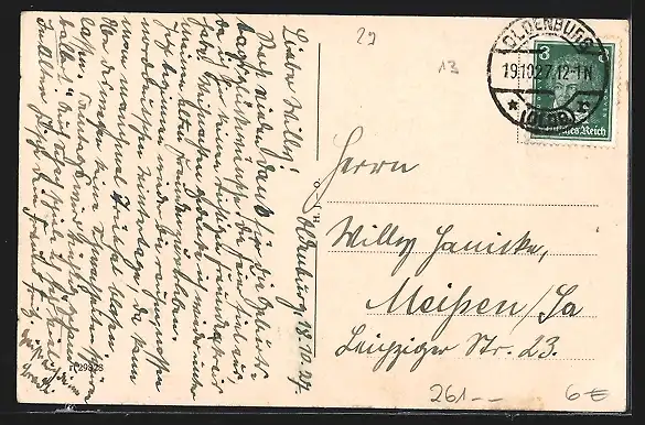 alte Ansichtskarte, gelaufen 1927, Stempelspur, guter Zustand