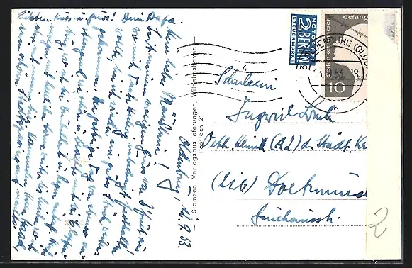 alte Ansichtskarte, gelaufen 1953, rückseitig Klebe- und Papierreste, Eckknick re. oben, guter Zustand