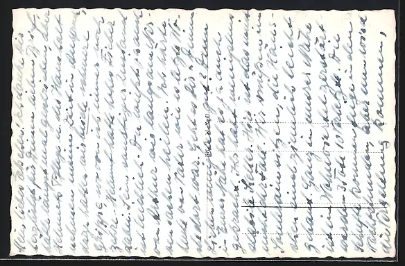 Personenbezogene Daten auf der Rückseite der Karte wurden durch blauen Textmarker unkenntlich gemacht. Die blauen Stellen sind auf die Vorderseite durchgeweicht und wirken sich negativ auf das Postkartenfoto aus