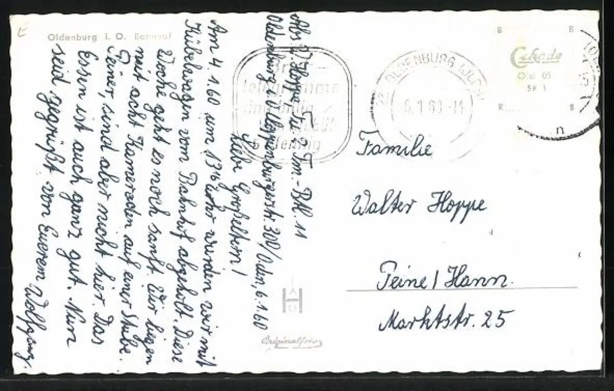 alte Ansichtskarte, gelaufen 1960, Briefmarke entfernt, guter Zustand