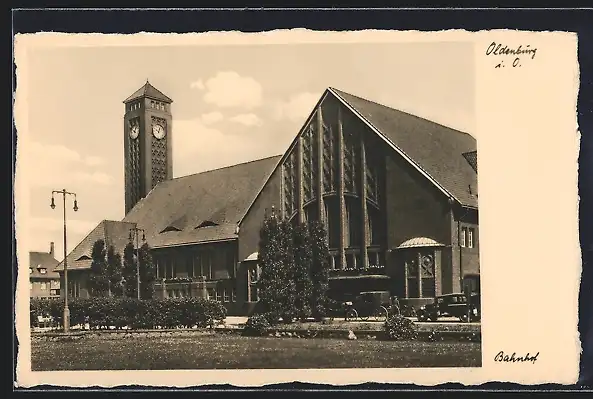 AK Oldenburg i. O., Bahnhof im Sonnenschein