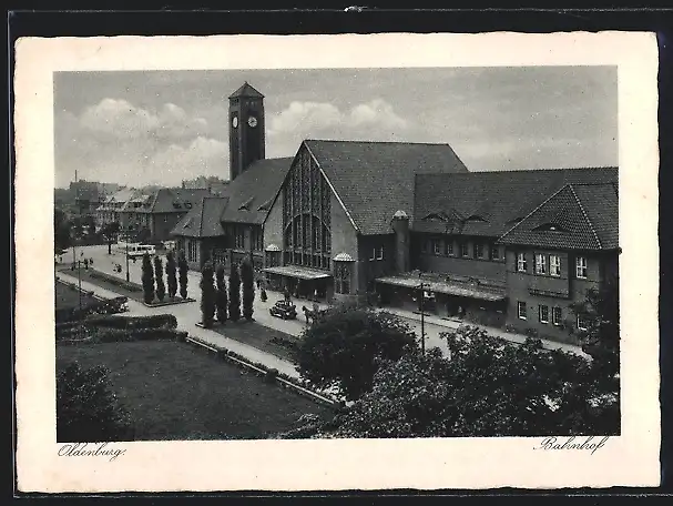 AK Oldenburg i. O., Bahnhof mit Strassenpartie