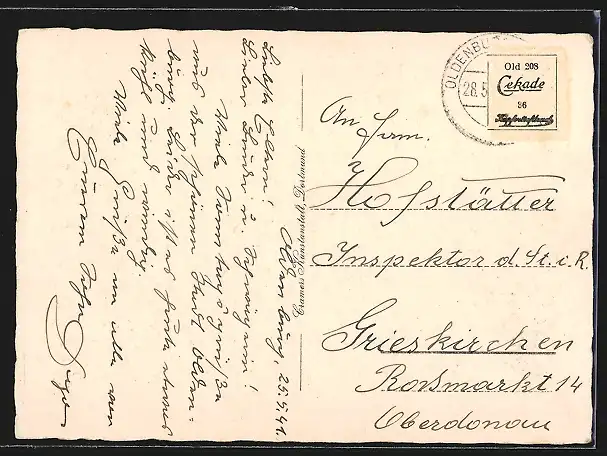 alte Ansichtskarte, gelaufen, Briefmarke entfernt, guter Zustand