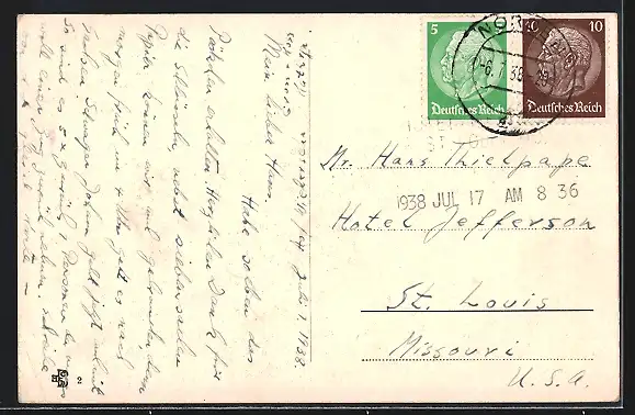 gelaufen 1938, Eckknick unten re., guter Zustand