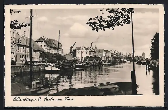 AK Oldenburg i. O., Flusspartie mit Fischerboote am Ufer