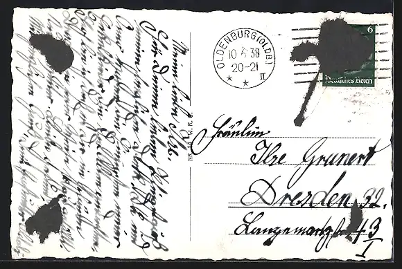 gelaufen 1938, rückseitig Klebe- und Papierreste, guter Zustand