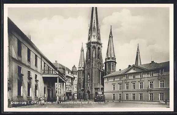 AK Oldenburg i. O., Kasinoplatz mit Lambertikirche und Finanzamt