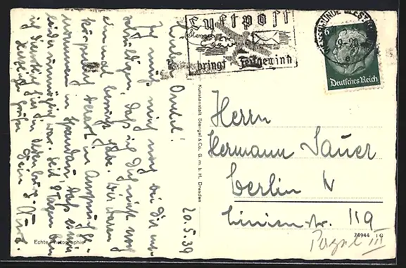 alte Ansichtskarte, gelaufen 1939, Stempelspur, guter Zustand