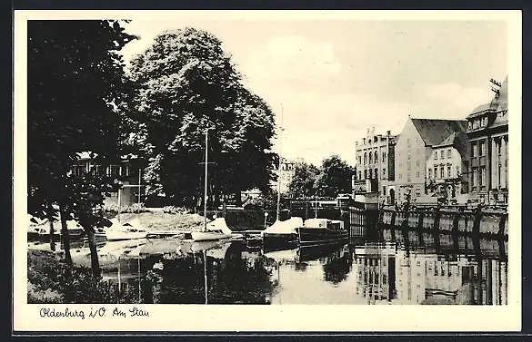 AK Oldenburg i. O., Partie am Stau mit Booten