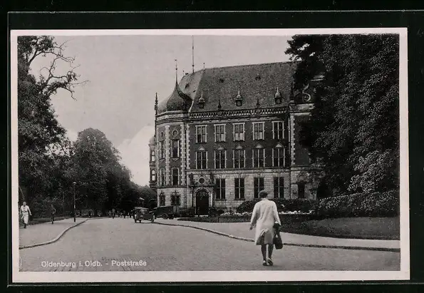 AK Oldenburg i. O., Postatrasse mit Postgebäude
