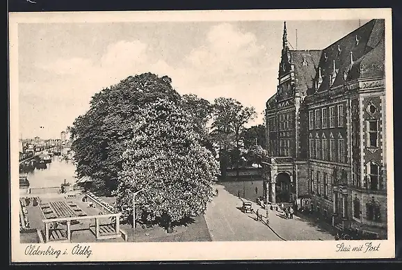 AK Oldenburg i. O., Stau mit Post aus der Vogelschau