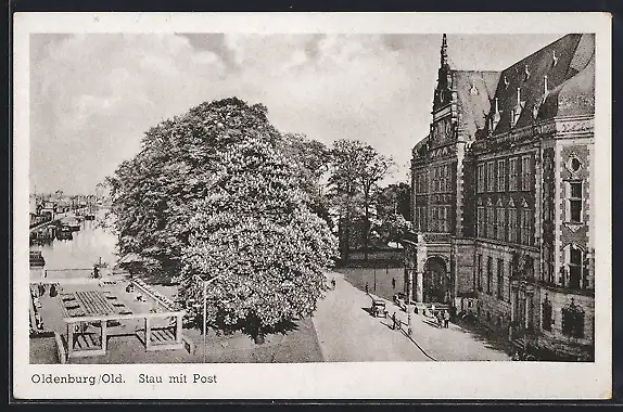 AK Oldenburg i. O., Stau mit Post aus der Vogelschau