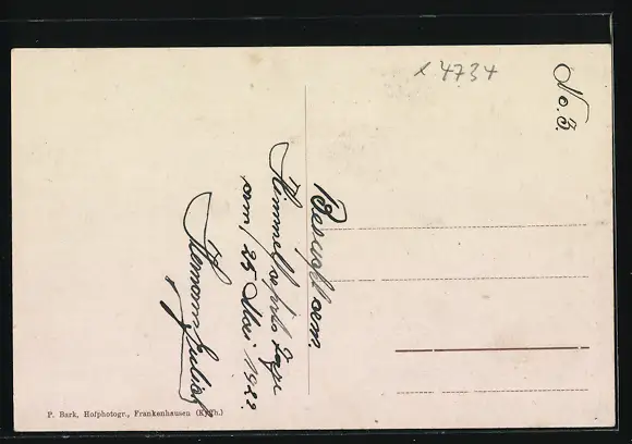 Personenbezogene Daten auf der Rückseite der Karte wurden durch blauen Textmarker unkenntlich gemacht. Die blauen Stellen sind auf die Vorderseite durchgeweicht und wirken sich negativ auf das Postkartenfoto aus