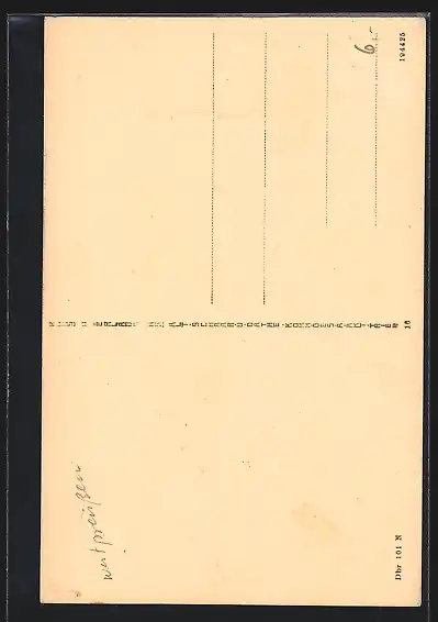 Personenbezogene Daten auf der Rückseite der Karte wurden durch blauen Textmarker unkenntlich gemacht. Die blauen Stellen sind auf die Vorderseite durchgeweicht und wirken sich negativ auf das Postkartenfoto aus