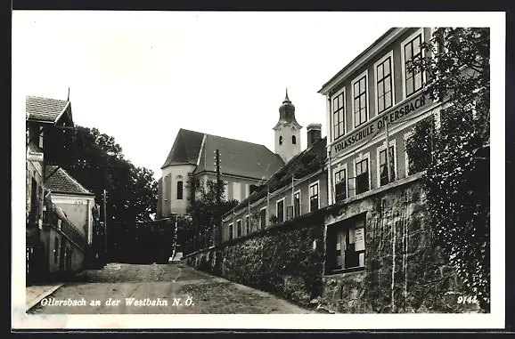 AK Ollersbach an der Westbahn, Strassenpartie mit Volksschule