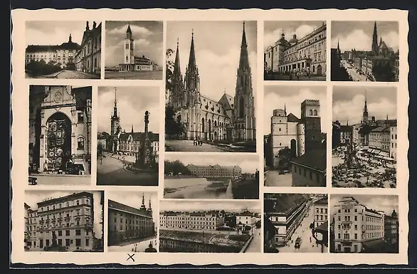 AK Olmütz, Hotel Palace, Kirche, Rathaus, Strassenpartie