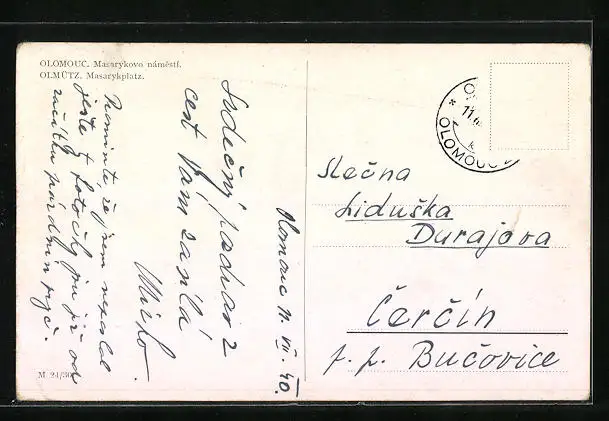 AK Olmütz, Masarykplatz aus der Vogelschau