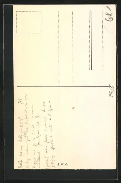 Personenbezogene Daten auf der Rückseite der Karte wurden durch blauen Textmarker unkenntlich gemacht. Die blauen Stellen sind auf die Vorderseite durchgeweicht und wirken sich negativ auf das Postkartenfoto aus