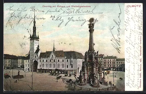 AK Olmütz, Oberring mit Rathaus und Dreifaltigkeitssäule